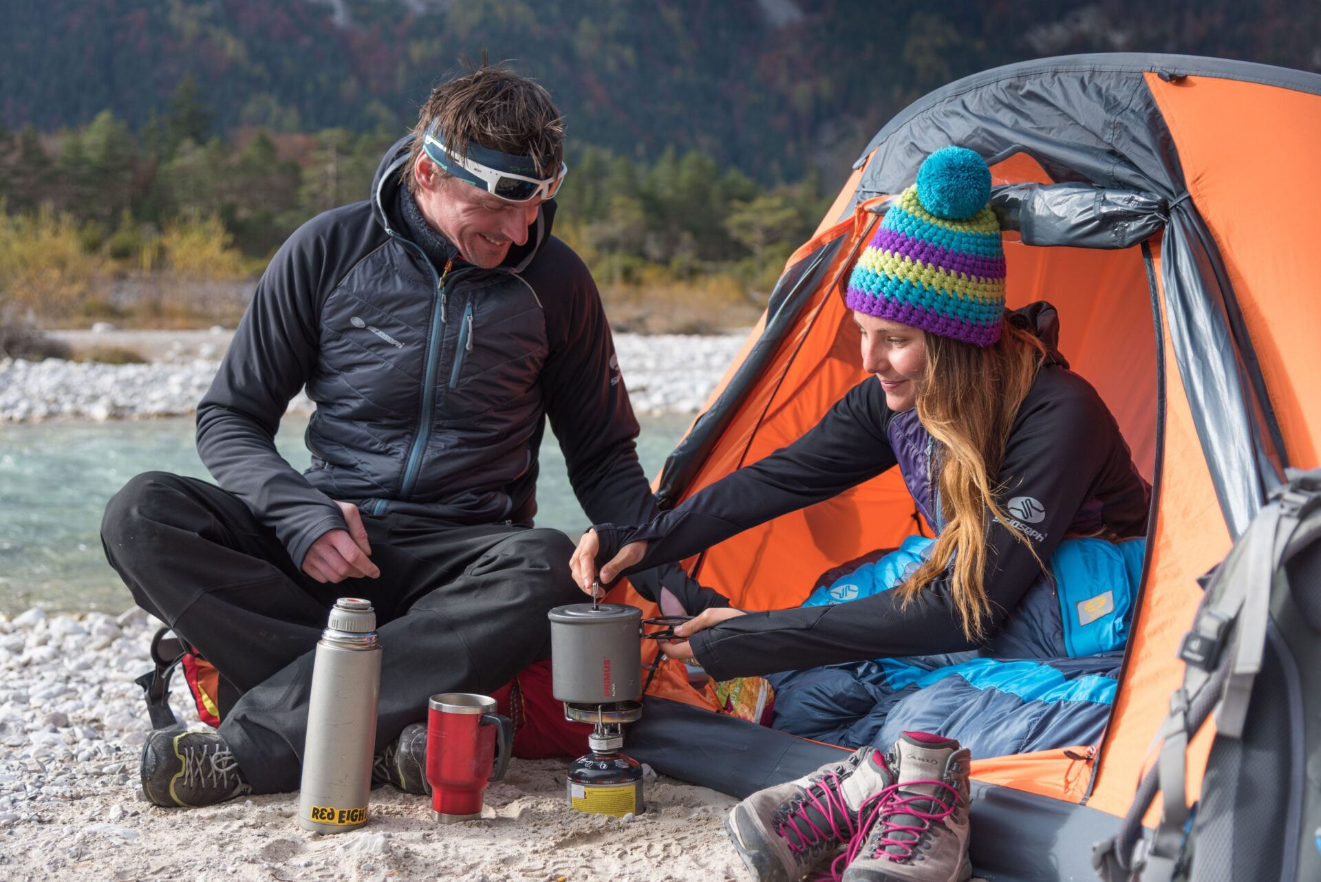 Tělo se sice zahřívá nikoli však tak intenzivně, aby se dokázalo se zimou popasovat a my se cítili “v pohodě“. Proto je nutná kvalitní izolace s minimálními tepelnými ztrátami, nejlépe s co nejnižší hmotností. Ideální podmínky pro péřovou bundu.
