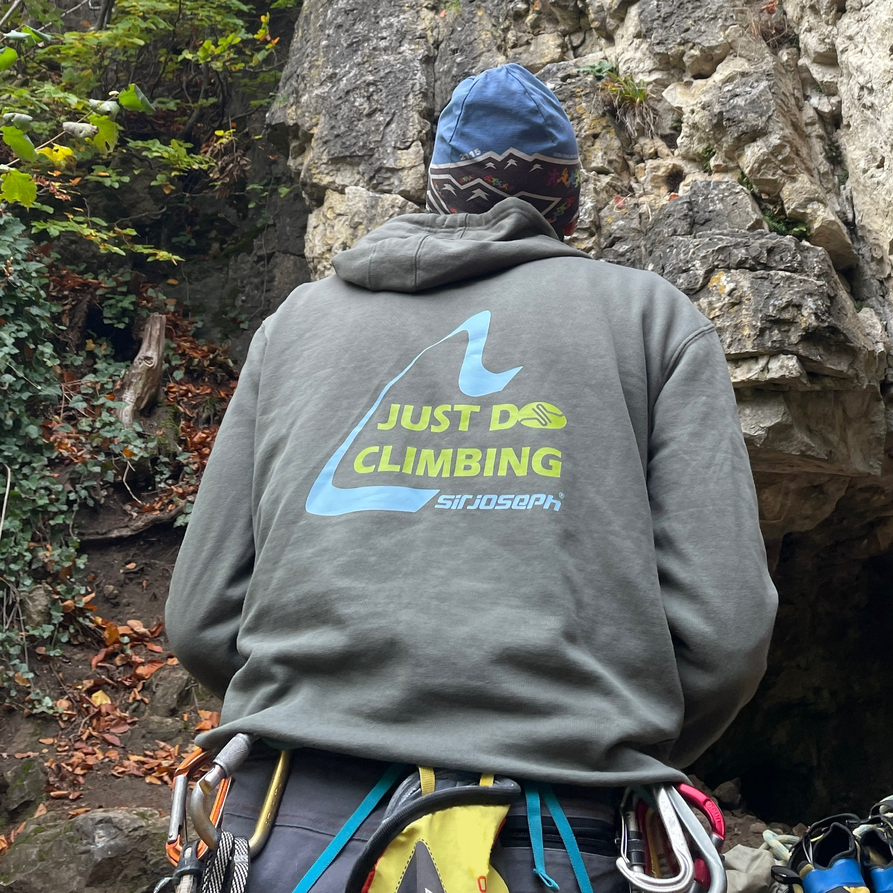 Pánská bavlněná mikina se zipem s grafikou Just do climbing ti ukazuje jasný směr co máme rádi za aktivitu.